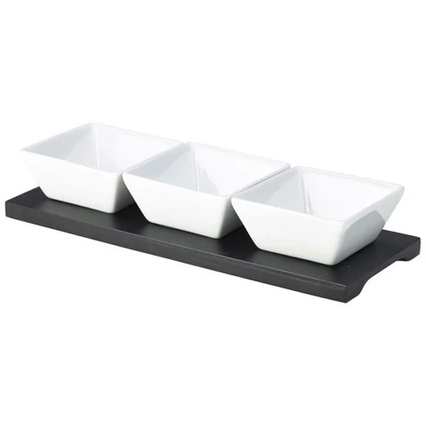 Black Wood Dip Tray Set 27 x 10cm W/ 3 Dishes